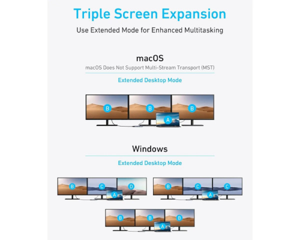 - ANKER USB-C Data Hub, 8u1, Triple Display, PD 85W doking stanica siva