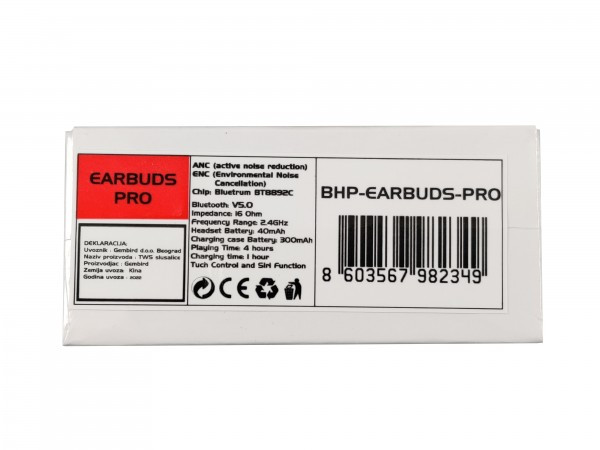 - BHP-EARBUDS-PRO ** (ANC) Gembird bluetooth V5.0 slusalice, ANC/ENC noise r. 16ohm, touch control2399