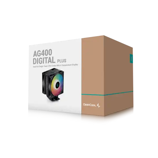 - DeepCool AG400 DIGITAL PLUS 4xHeat Pipe, Real-Time CPU Screen, 220W 2x120mm 2100rpm 76CFM, Intel/AMD